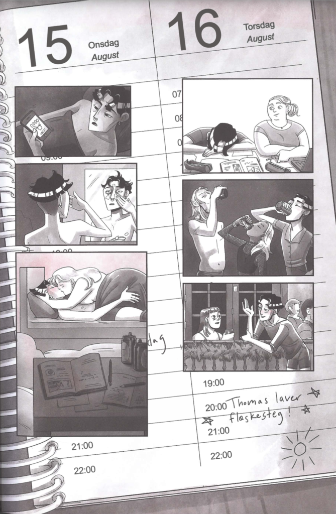 For det er her, at jeg synes Nymfe er særlig interessant. Den portrætterer et mylder af gråzoner, som er mere eller mindre lyse, afhængigt af hvilket standpunkt man har. Og som læser får den dig til at tænke over, hvad der egentligt er normalt og acceptabelt – særligt blandt folk på Hans’ alder – og hvad der egentlig er problematisk. For eksempel Hans’ brug af feststoffer, og hans sex-positive tilgang til (by)livet.