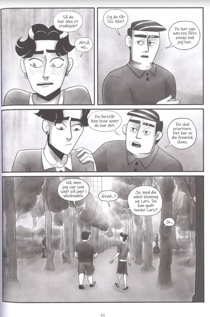Der er flere interessante gråzoner – for eksempel aldersforskellen på Mason og Hans. Mason er 31, og Hans er lige startet i 3.g – med mine avancerede antropolog/matematikkundskaber udleder jeg, at Hans er ca. 19 år. Her bliver den woke-interesserede, som har fulgt den politiske diskurs om alt muligt magtdynamik-relateret, interesseret i aldersforskellen her: Hvordan bliver det adresseret? Svaret er: Det gør det faktisk ikke rigtigt. Og her er vi tilbage til gråzone-slideren, for det er op til læseren at konfrontere sin egen moral og overbevisning. Er det totalt fine and dandy, fordi begge er voksne, samtykkende mennesker. Fordi der ikke er et magtforhold i form af fx et lærer-elev-forhold – og i øvrigt er det Hans, der initierer? Eller fremprovokerer aldersforskellen lidt en ick-følelse i læseren, fordi den ene er fuldvoksen, og den anden stadig er teenager – og er i øvrigt måske lidt skrøbelig?