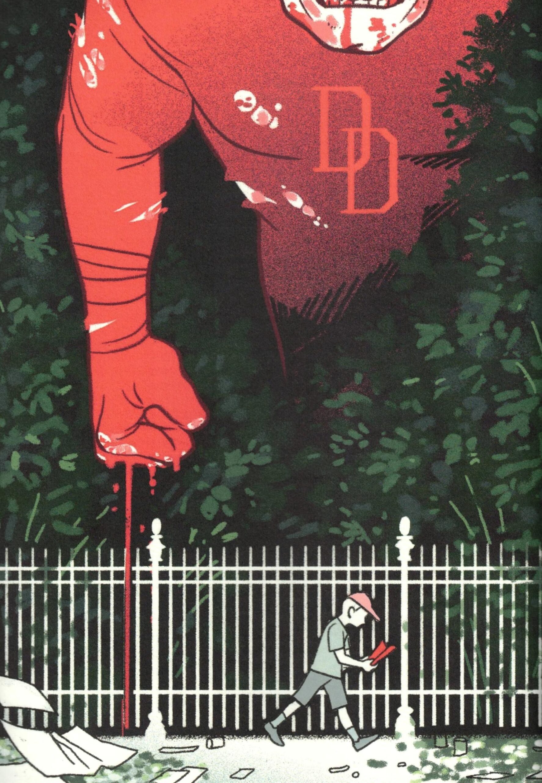 Og lad os bare starte der, med det allerbedste ved Mellem Stregerne: Kvaliteten af tegningerne, der illustrerer de forskellige essays — signeret Fred Tornager, Karoline Stjernfelt og engelske Mark Walker — er tårnhøj. Særligt er Karoline Stjernfelts illustration af drengen, der fortaber sig i en Daredevil-tegneserie, helt plakatagtig fremragende. Det varmer hjertet, når det nu er tegneserier, det handler om.
