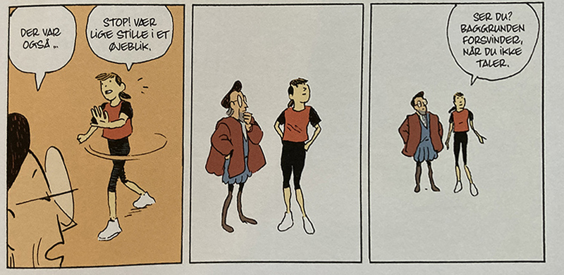 Nicoby udnytter til fulde, at en tegneserie har nogle helt andre muligheder end tekst. Det er et skoleeksempel i show it, don’t tell it. Sofie opdager spillereglerne for en tegneserie og gør oprør mod dem. Hun modarbejder rudernes layout, slår vredt mod kanten og forsøger på alle måder at undslippe. Her får tegneseriens Sofie langt mere agens end romanens, hvilket gør hende til en mere interessant hovedperson.