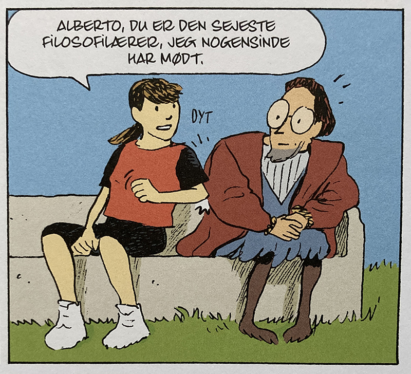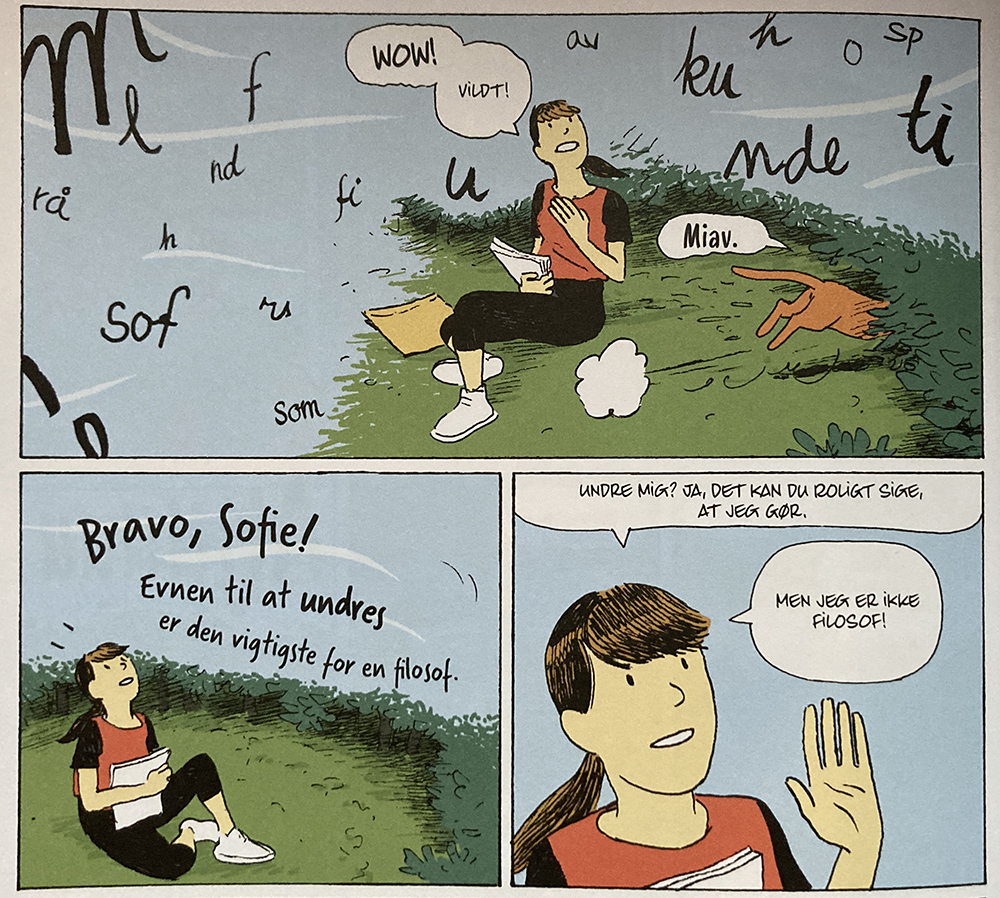 I takt med at Sofie bliver klogere, bliver Nicobys tegnede gags yderligere kreative og visuelt krævende for læseren. Det er næppe tilsigtet, men tegneserien fungerer både som en intro til filosofiens historie og til at forklare, hvordan tegneserier fungerer.