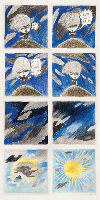 – Det er også derfor, tegneserien skrider frem med ét billede per side. På den måde får alt lige stor vægt, for alt er lige vigtigt for et barn – alt er dramatisk, og det skulle formen afspejle.