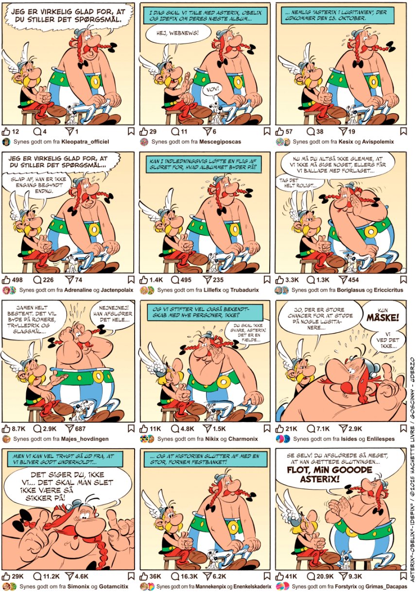 Selvom Albert Uderzo trak sig tilbage i 2011 (og senere døde i 2020), er der stadigvæk liv i hans berømte tegneserie Asterix, som han skabte med Rene Goscinny i 1959. Nummer 9s skribent har talt med det nuværende kreative makkerpar på tegneserien. Det nyeste album Asterix i Lusitanien udkom den d. 23. oktober, og det er blot andet album skabt i samarbejde mellem forfatteren Fabcaro og tegneren Didier Conrad. Det første var Asterix og Den Hvide Iris fra 2023.