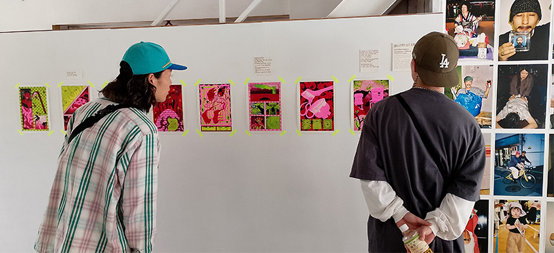 Efter at have tilbragt en måned i de 12 andre kunstneres selskab er det forløsende at se alles visioner blive til virkelighed. Det er utroligt diverst. Både konceptkunst, stoffarvning, grafiske illustrationer, malerier og tekst har fået plads hos Studio Kura.