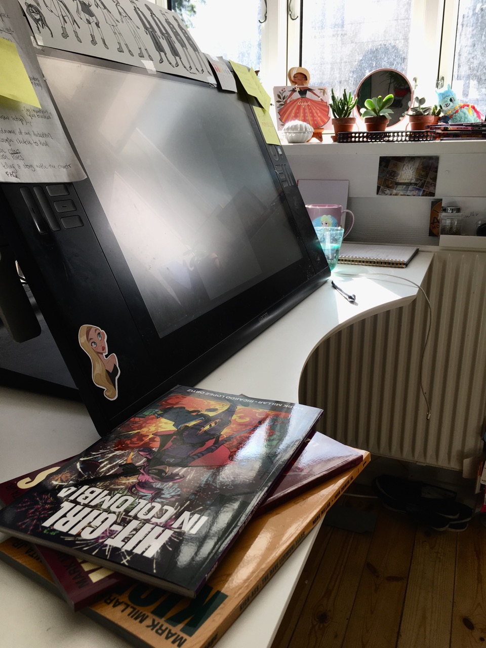 Ørum må selvfølgelig ikke dele noget fra serien, som vil være at finde i butikkerne fra januar 2019. Det nærmeste vi har kunne lokke ud af hende, er et billede af hendes skrivebord, hvor Hit-Girl i skrivende stund bliver vagt til live.