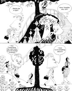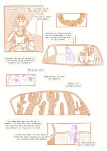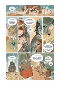 Soul in One af Anna C. S. Rasmussen vinder prisen for bedste ordspil i titlen – den handler nemlig om at spille minigolf med døden om retten til at vinde sin sjæl og sit liv tilbage. Der er næsten for mange visuelle ideer på spil, men jeg synes tegneserien holder vand, og det drypper af potentiale ud over det hele.